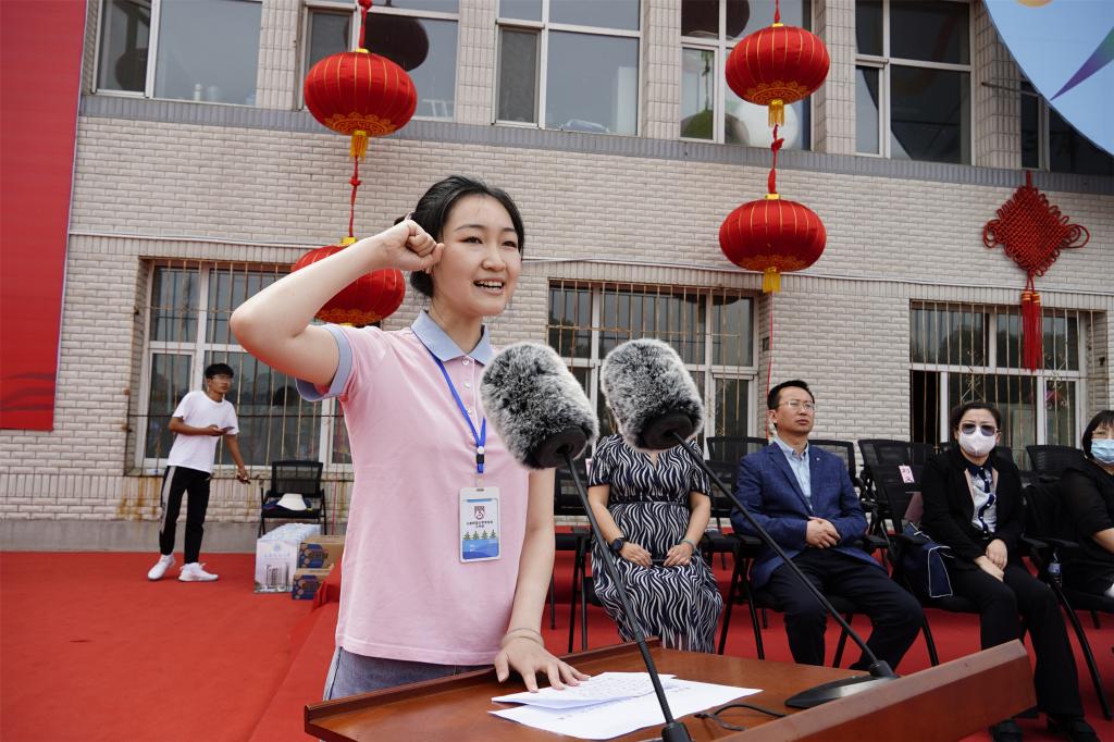 田径场内,红旗随风飘扬,激情澎湃,一片朝气蓬勃的景象。体育学院教师孙一雄代表裁判员、传媒学院2020级播音与主持艺术专业学生刘雅楠代表运动员庄严宣誓,分别表达了恪守原则、公正裁决的态度和奋勇争先、争创佳绩的决心,道出心中的热血与青春梦想。