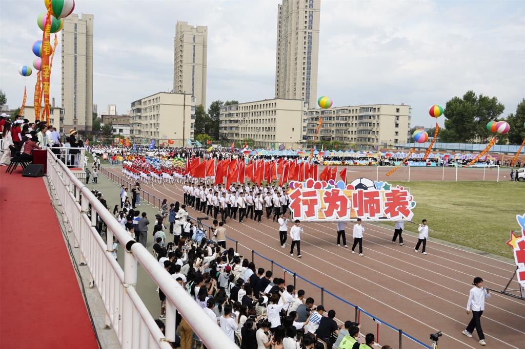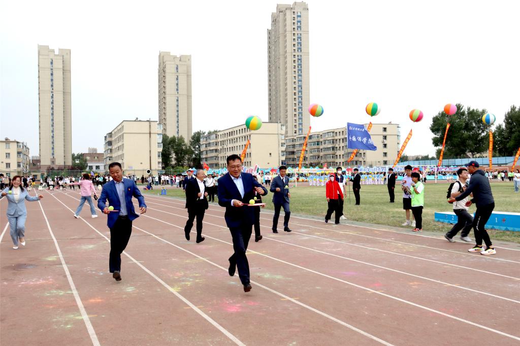 “加油!加油!加油!”伴随着一声清脆的发令枪,田赛、径赛的决赛项目正式拉开序幕,整个田径场锣鼓喧天,呐喊助威声此起彼伏。别出心裁的教职工趣味运动项目在西侧足球场火热进行,老师们踊跃参加着投壶、抢收抢种、前呼后拥、毛毛虫竞速、扔沙包等趣味活动,平时不苟言笑、严谨认真的他们仿佛找回了青春记忆,肆意的挥洒汗水,享受此刻运动带来的快乐。