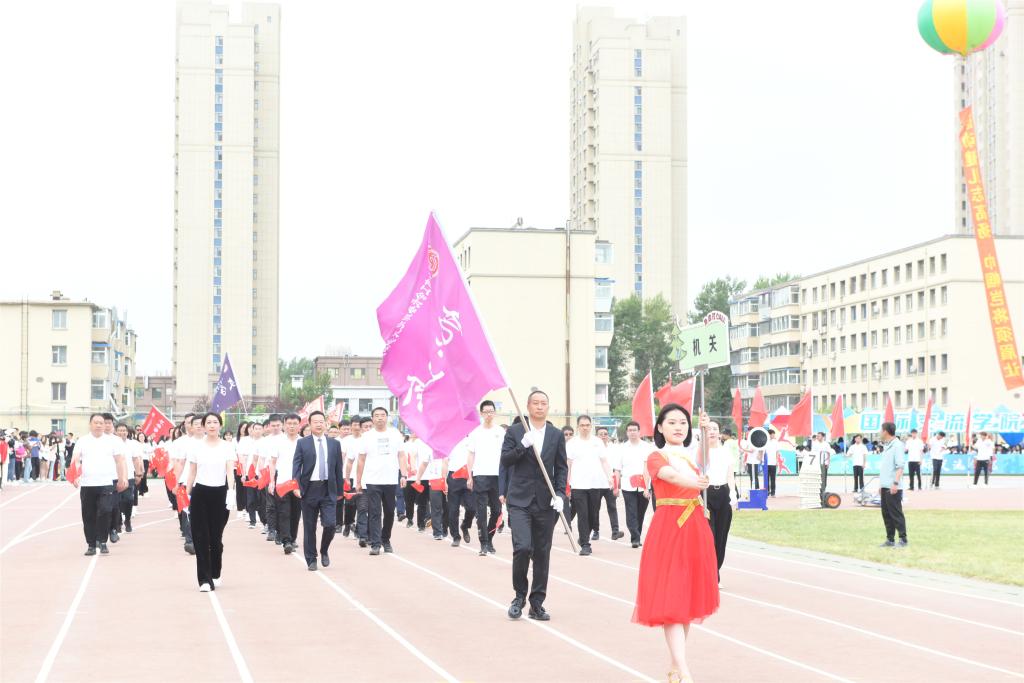上午8:30,伴随着激昂奋进的《运动员进行曲》,国旗、校旗、运动会会旗护旗队迈着铿锵有力的步伐率先入场,经过主席台接受检阅,英姿飒爽,整齐划一;花束方队、刀旗方队、裁判员方队紧随其后,笑颜如花、精神抖擞;全校20个学生方队和23个教职工方队迈着整齐的步伐接受检阅,整齐的队伍、响亮的口号、五彩斑斓的服装,充满创意的特色展示彰显了我校师生锐意进取、蓬勃向上的精神风貌。