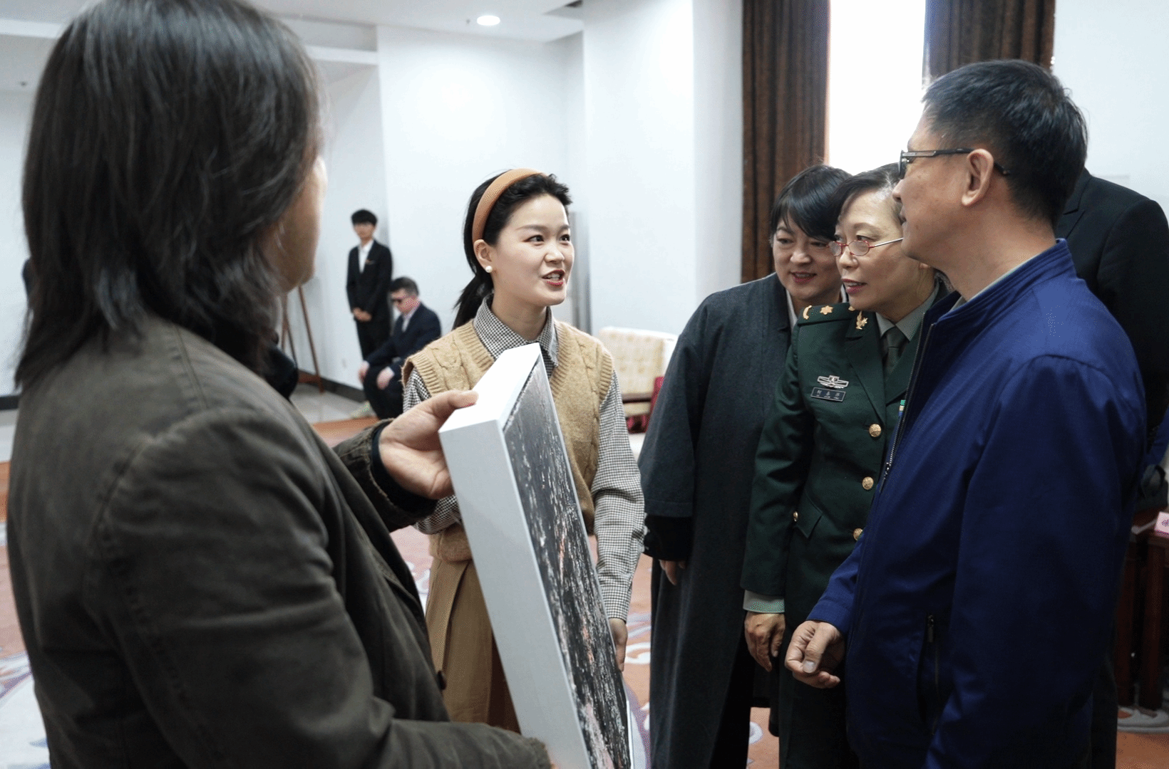 肌理画作品《老山前线》的作者、美术学院2021级研究生李小曼感到备受鼓舞,“在深入了解了王琦同志的英勇事迹后,我对这位新时代优秀退役军人的崇敬之情油然而生。他无私奉献、英勇无畏的精神,是我们学习的榜样。作为当代大学生,我们有责任也有义务以艺术的形式,宣传并展现这样的英雄事迹。当我得知王琦同志因公致盲后,我深感震撼。因此,我决定不采用传统的绘画方式,而是尝试通过刻画、打磨等手法,创造出他能够真实触摸到的肌理。希望通过这样的创作,能够让更多人了解英雄的感人故事,激发更多人的爱国情怀和奉献精神。”