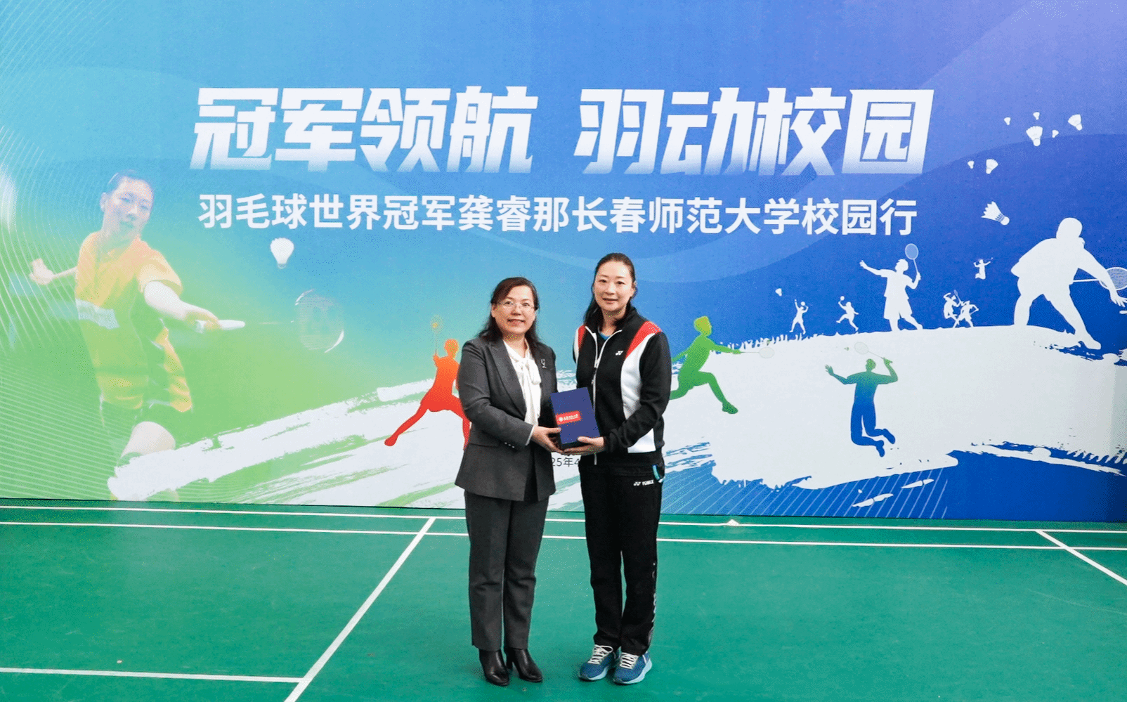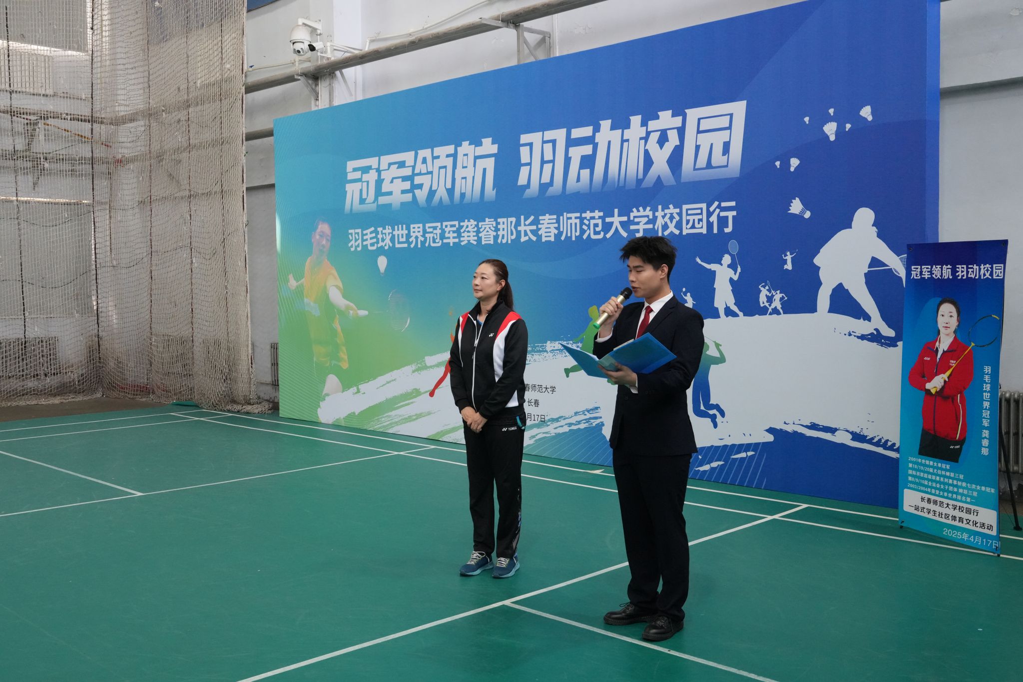 4月17日上午,由吉林省体育局组织的“冠军领航、羽动校园”系列活动在我校体育馆举行。羽毛球世界冠军龚睿那走进我校,与师生亲切交流并切磋球技。中国羽毛球协会青少部部长刘茹,我校副校长陈爱梅出席活动。
